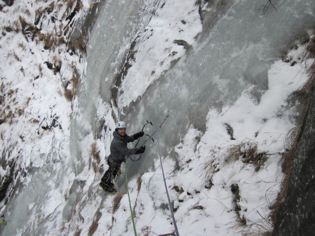 Posle Maralmfall-a silazimo i tu pored puta ( a leda ima svuda pa dosta i pored puta ) slijedi prečkanje te druge vježbe. Kako preći iz vertikale na plato, pravljenje abalakova i sidrišta, kako najlakše i najbolje postaviti vijak, kako ih očistiti…i drugi savjeti. Više nego korisno.